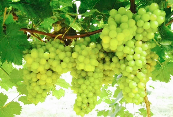 這個令人垂涎不止的葡萄有個很美的名字叫夏因馬斯卡特鮮葡萄,入口即可以感受到一股淡淡的玫瑰香味,穗重600克左右,大穗可達1500克左右,平均果粒重8-15克;果粒著生緊蜜,橢圓形,黃綠色,果面有光澤,果粉少,果肉鮮脆多汁,糖度最高達26度左右。